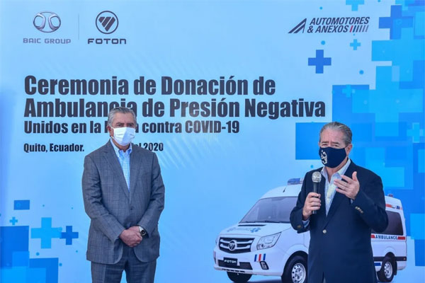 With the assistance of its distributor, Foton del Ecuador S.C.C, BAIC Foton has already donated 10,000 masks to Ecuador. As a part of their first donation plan this year, BAIC & BAIC Foton will donate seven units negative pressure ambulance vehicles to four countries.
