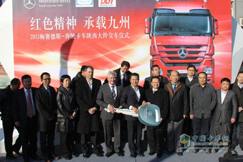 Sales director of Mercedes-Benz of Daimler Truck and Bus China Zhang Wubin says in his speech: “we’re very glad to have another order of Benz Actros from Shaanxi Dajian. It shows our customer fully trust Benz trucks and services. We hope in future Mercedes-Benz will provide more help to heavy cargo transportation enterprises and facilitate the booming and development of Chinese logistics industry relying our leading products and technology.