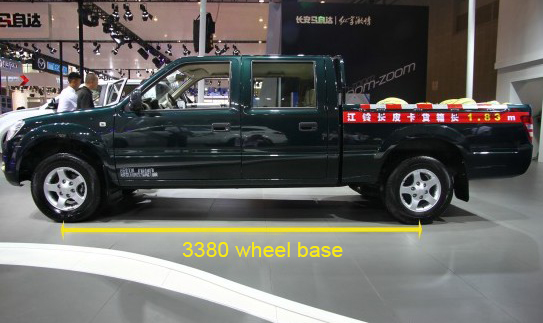 The length is 1830mm, 350mm longer than the traditional cargo van. And the wheelbase is 3380mm from 3025mm to give more carrying space.
