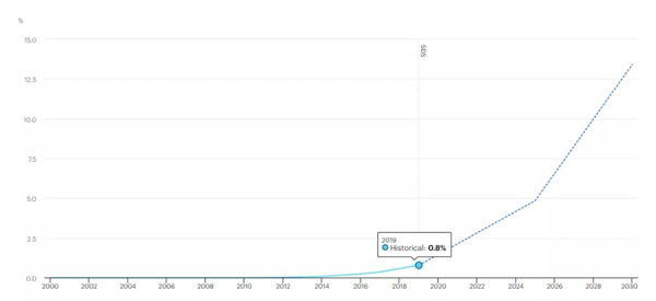With rapid growth in electric car sales over the past decade, electric cars make up about 1% of the global car fleet today. In the Sustainable Development Scenario (SDS), 13% of the global car fleet is electric by 2030, requiring annual average growth of 36% per year between 2019 and 2030.