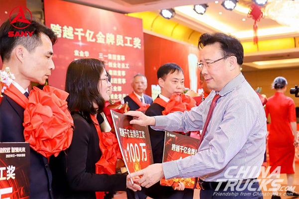 Another promise was also fulfilled upon crossing the 100 billion mark. Thirty-three founding members, who have been with SANY since its inception, were granted the 100 Billion Gold Medal Employee prize of RMB 1 million each in cash. In 1995, Liang gave out vouchers to all his initial employees and promised that these vouchers would gain them rewards with each milestone achieved in the company’s growth. This year, the rewards were RMB 1 million, and they will be increased to 5 million when the market value hits RMB 1,000 billion, according to Liang.