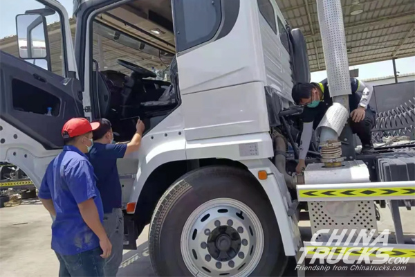 On April 24, together with Weichai Power service personnel and KHF personnel from the UAE local service station, staff of SHACMAN provided training on vehicle maintenance, operation specificationsand 360°vehicle explanations for the drivers under the high temperature of 40 degrees, Besides, they conduct vehicle operation questionnaire surveys and present maintenance accessories and gifts on site.