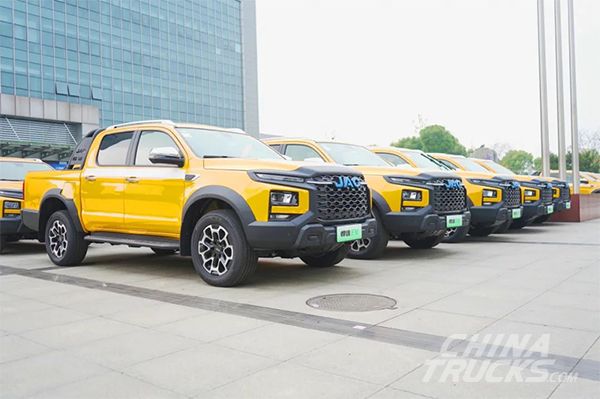 At the ceremony, JAC Hunter EVs drove out one after another, proudly heading toward the power lines. These vehicles will play a key role in power line inspections, equipment maintenance, and emergency repairs, marking a major contribution to the green and low-carbon development of the electric power system.