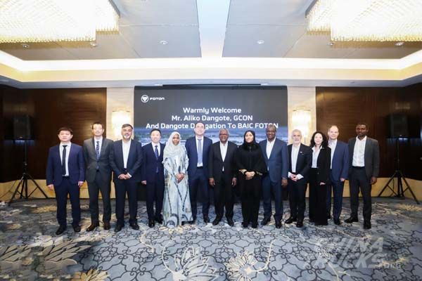 FOTON has strengthened its partnership with Nigeria’s Dangote Group following a strategic meeting in Beijing led by Chairman Aliko Dangote. The talks were attended by Chang Rui, General Manager of BAIC Group and Chairman of FOTON, Lu Zhenghua, Executive Vice President of FOTON, and Fu Jun, Vice President of FOTON and President of the Overseas Business Division.