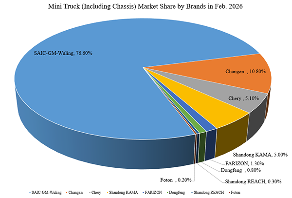 For the first two months of 2026, cumulative mini truck sales reached 85,300 units, also a five-year high, rising by approximately 26,200 units from the same period last year.